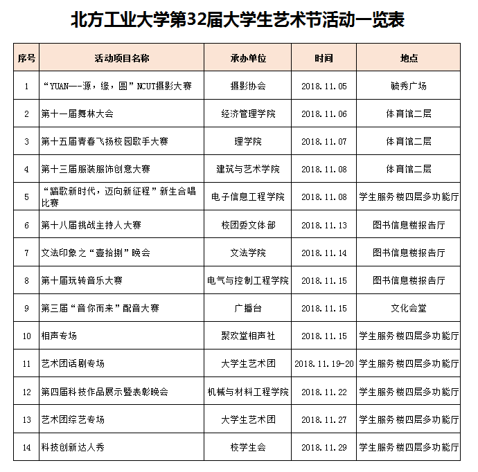 附件:《伟德国际唯一官网入口第32届大学生艺术节活动一览表》