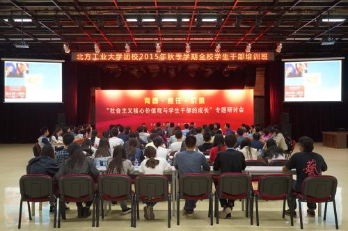 9月28日晚,校团委在学生服务楼多功能厅举行了2015年秋季学期学生干部培训班开班式。开班式以“青春,责任,价值——社会主义核心价值观与学生干部的成长”专题研讨的形式举行,邀请北京团市委大学部部长张秀峰作主题报告,校学生工作部部长李云驰、各学院团总支书记、校院两级主要学生干部出席,校团委书记何有华主持开班式及专题研讨会。