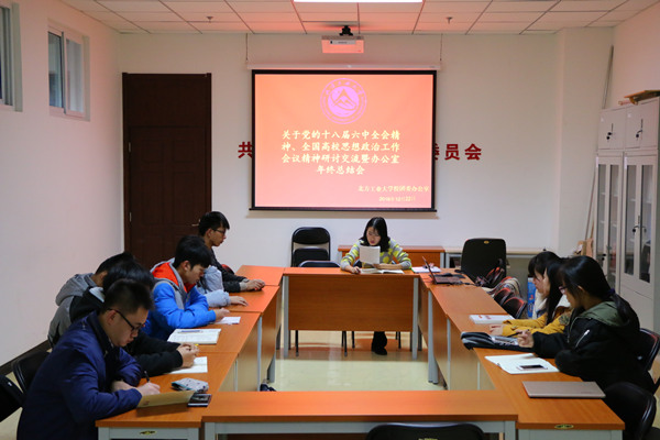 12月22日,校团委办公室在学生服务楼323团校会议室召开了全体成员学习交流会,就党的十八届六中全会和全国高校思想政治会议精神进行了集中学习讨论。