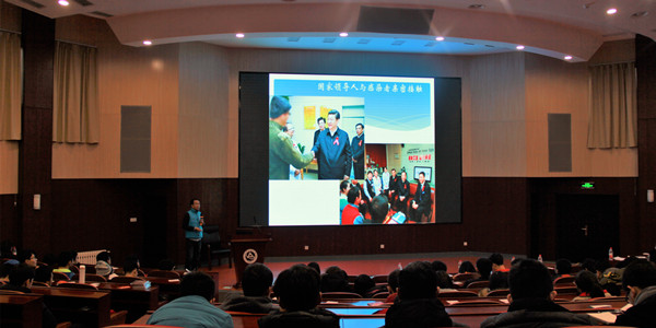 红丝带高校行活动的李卓讲师为学生介绍了艾滋病的相关知识,讲述了艾滋病的由来、目前状况、以及艾滋病的预防工作。北京红丝带之家志愿者李一龙老师结合志愿者分享的故事,小到平民百姓、大到国际领导,向学生讲述了红丝带之家在艾滋病防治工作上做出的贡献。会议结束后,全体到场同学合影留念。