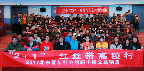 2017年11月30日,由地坛医院携手红丝带之家举办的“2+1”红丝带高校行活动在我校文化会堂举行。北京红丝带之家志愿者李一龙老师、“2+1”红丝带高校行活动李卓讲师、机械与材料工程学院团委书记石卉、17级辅导员郑华以及17级全体学生参加了本次活动。