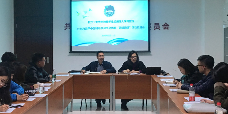3月13日下午六点,校团委下属各校级学生组织负责人在学生服务楼323会议室召开了校级学生组织深入学习宣传贯彻习近平新时代中国特色社会主义思想“四进四信”活动推进会。校团委书记何有华出席会议并对新学期各部门的工作给予了具体指导,会议由校团委副书记陈国秀主持。