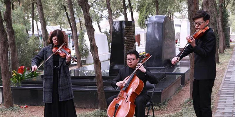 同学们以提琴合奏寄托哀思。