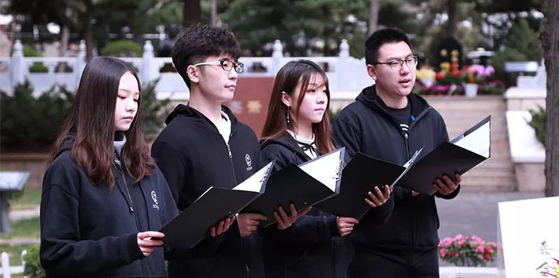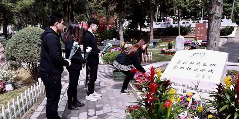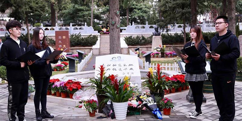 4月4日上午,2018年北京市清明红色祭扫活动在八宝山革命公墓举行。伟德国际唯一官网入口20余名师生参加了此次“特色祭扫”和志愿服务活动。在祭扫活动开始前,大学生和志愿者代表在罗荣桓元帅、聂荣臻元帅等功勋卓著的革命将领墓碑前开展了一系列主题祭扫活动,用不同方式纪念和缅怀革命先辈。