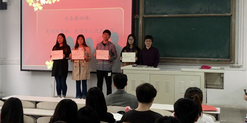 赵洁老师宣读了《经济管理学院关于表彰2016级先进班集体和先进个人的决定》,到场老师为受到表彰的学生代表颁发了证书。获奖学生代表魏婧冉同学作了交流发言,她号召大家要重视平时的学习,学会辩证思考,不忽视每项课后作业,充分利用好自己的课余时间。