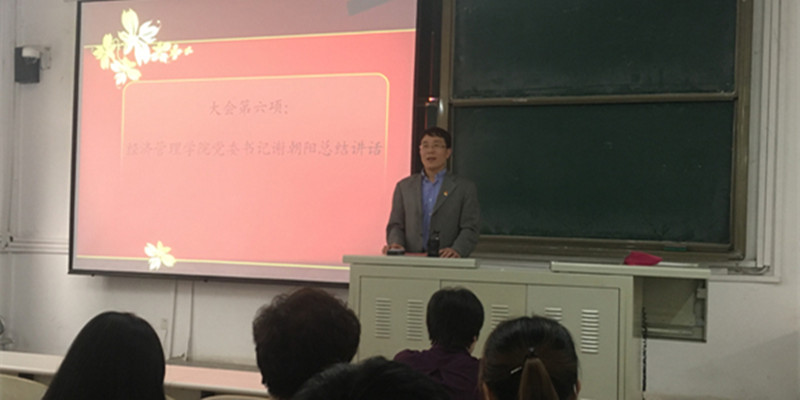 4月2日下午,经济管理学院在励学楼228教室召开了2016级学风总结暨学生骨干培训会。学院党委书记谢朝阳、副书记赵洁、16级辅导员吴芳及16级全体学生党员、学生干部、积极分子参加了此次会议。