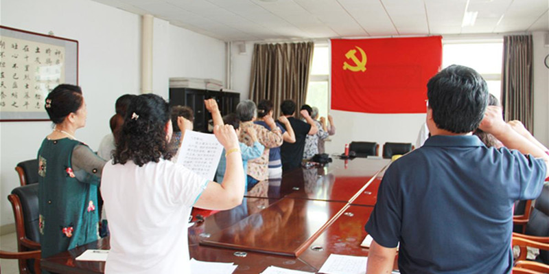 在支部书记的带领下,老党员们全体起立,面对党旗,重温当年入党誓词,不忘初心,牢记使命。