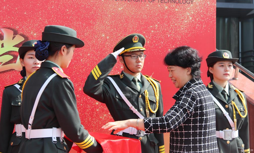 9月28日中午,在国庆节即将来临之际,我校在毓秀广场举行了国旗班换届交接仪式。校党委书记郑文堂、校党委副书记田红芳,武装部、校团委、各学院的领导,以及师生代表300余人参加仪式。