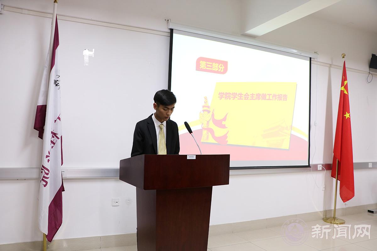 大会在庄严的中华人民共和国国歌中开始。院学生会主席张昊然向学生代表及领导们做了题为《求实创新继往开来为打造学生会服务学生的新局面而努力》的学生会工作报告。报告总结回顾了过去一年来的学院学生会工作和成绩,从思想引领、学风建设,组织建设、打造学院品牌活动、学生干部队伍培养等方面做了梳理和总结。同时号召广大土木学子在“中国梦”的激励下,在“敦品励学,才德并懋”校训的指引下,珍惜青春、汇聚力量,坚定理想信念、勇担历史使命,成长为有社会责任、有创新精神、有专门知识、有实践能力、有健康身心的应用型高级专门人才,在新时代伟大征程中为实现“两个一百年”奋斗目标、实现中华民族伟大复兴的中国梦奋力谱写青春华章。