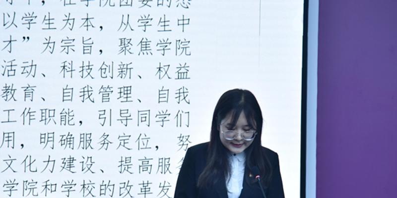 学生会主席窦蕾代表学院第一届第二任学生会作了题为《践行初心使命,勇于担当作为,努力创建新时代服务型学生组织》的工作报告。报告回顾了自上次学生代表大会以来,学生会围绕学院中心工作,积极发挥学生自我管理、自我教育、自我服务、自我监督的功能,在思想引领、学风建设、校园文化建设、学生干部培养、素质教育、组织建设和服务首都等方面积累的成功做法,深入分析了存在的问题和不足,就下一阶段学生会工作做了计划安排。