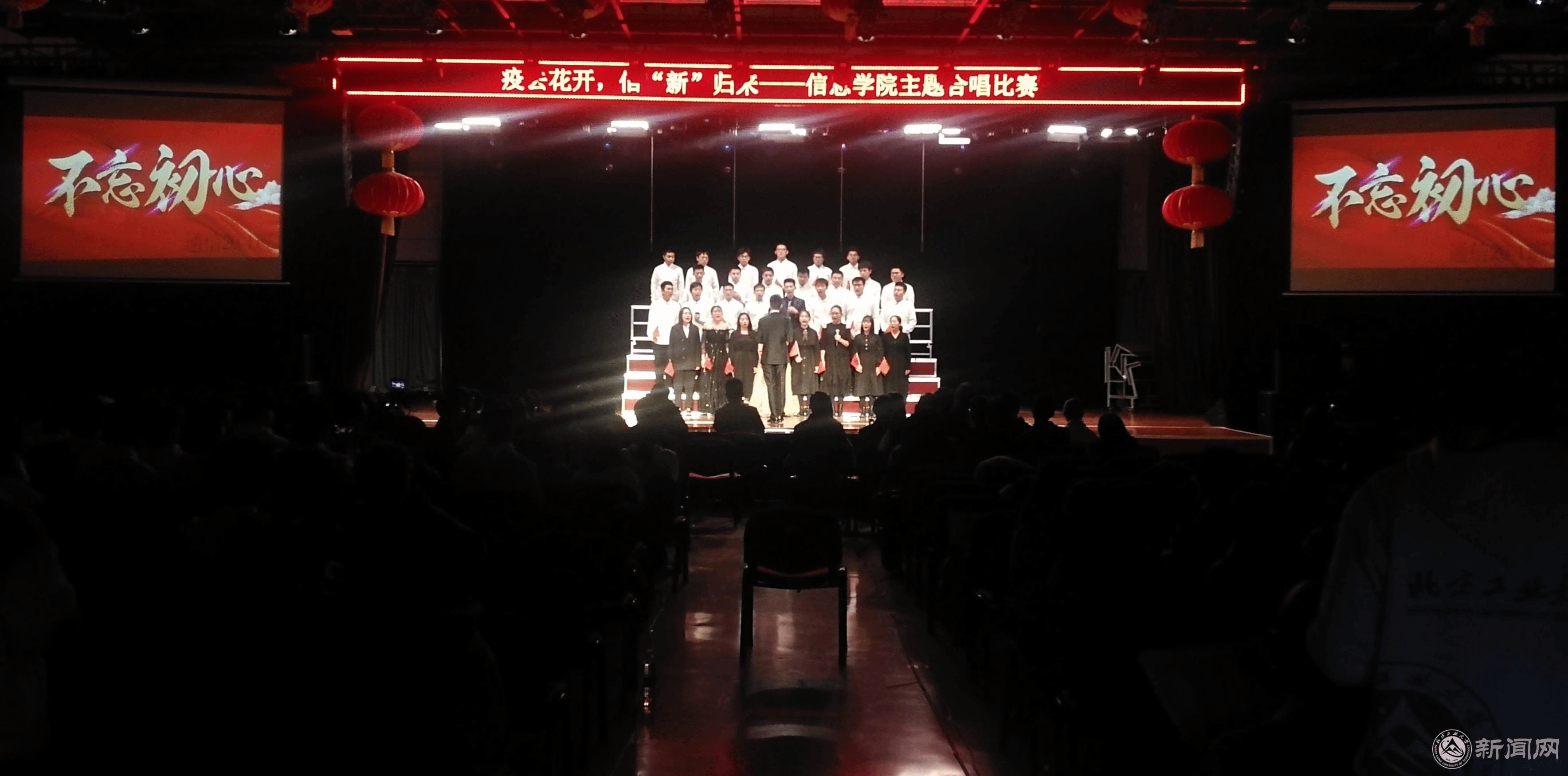 哪有什么岁月静好,只是有人替你负重前行,在突如其来的疫情之中,白衣战士、公安干警、社区工作者乃至青年志愿者们的默默奉献,为我们赢得了今天相对安稳的生活。学院在活动策划之初,决定以实际行动致敬最美逆行者,大力弘扬家国情怀,并将疫情防控要求落到实处。针对新生人数多的特点,学院创新了合唱比赛的内容和形式,以初赛加决赛、室外加室内、线上加线下的方式举办,为每位新生提供展示机会,建强班级凝聚力,助力学生全面成才。初赛在毓秀广场校训树下录制,18个班级同学和班导师依次登台合唱。经过NCUT信息青年公众号集中展示及线上评比,9个班级入围决赛进行现场展示,并通过哔哩哔哩平台直播。