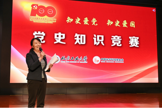 校党委副书记田红芳作总结讲话。她肯定了本次竞赛活动,认为活动形式新颖,集知识性、趣味性、互动性为一体,是一堂生动、鲜活的党史学习教育课;选手们准备充分,展现出了丰富的知识积累和敏捷的思辨能力,涌现出了一批党史学习教育标兵。她指出,通过与中国光华科技基金会联合开展竞赛活动,开阔了同学们的视野,扩大了交流,加深了友谊。她强调,中国共产党百年的发展历史波澜壮阔,本身就是一部生动的教科书,希望同学们学史明理、学史增信、学史崇德、学史力行,进一步加深对党史党情的理解和思考,更加坚定知党信党爱党跟党走的决心;从百年党史中汲取奋进和智慧的力量,并把这种力量转化为行动,在学习工作生活中走在前、做表率、勇创新、敢担当,展现北方工大学子的青春风采,以优异的成绩向中国共产党成立100周年献礼。