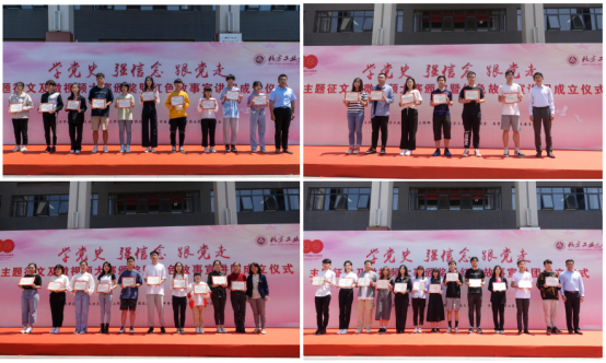 6月1日中午,在即将迎来中国共产党百年华诞之际,学校在毓秀广场隆重举办“学党史、强信念、跟党走”主题征文及微视频大赛颁奖暨红色故事宣讲团成立仪式,进一步推动党史学习教育走深走实。校党委书记缪劲翔、副书记田红芳,石景山团区委书记贾曦、副书记于勇,以及学校相关职能部门负责人,各学院党委副书记、团委书记、学生代表参加活动。