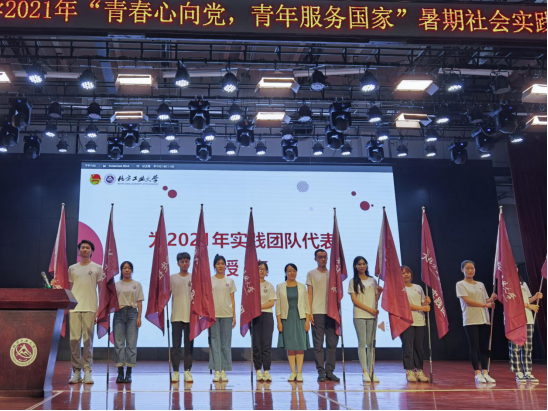 田红芳向2021年暑期社会实践重点团队代表授予“社会实践团”团旗,并发表了出征动员讲话。她指出,大学生社会实践是将所学理论知识通过实践进行深化认识和转化提升的有效途径,是重要的第二课堂。同学们要走进社会、了解社会、服务社会,通过亲身参与、亲自体会,深刻感受中国共产党一百年来带领全国人民艰苦奋斗取得的伟大成就,深刻感受中国特色社会主义的蓬勃生机与活力。她向同学们提出了三点要求:一是高度重视、认真对待。二是用心用情、展示风采。三是提高认识、安全第一。她强调,在迎接党的百年华诞之际,我们要沿着中国共产党百年奋斗的光辉道路,深度融入新时代发展的历史洪流,在实践中学党史、悟思想、办实事、开新局。