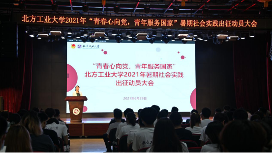 6月29日晚,学校在学生服务楼四层多功能厅举行“青春心向党,青年服务国家”2021暑期社会实践出征动员大会。校党委副书记田红芳、学生工作部部长高国伟、校团委书记何有华、各学院党委副书记、团委书记以及200余名暑期社会实践团负责人参加了大会。