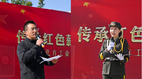 学校武装部部长郑泰平宣布第五届国旗班人员名单。第四届国旗班班长郝文绮同学代表国旗班老队员发言。