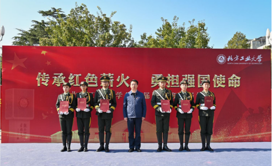 据悉,第四届国旗班在任期间,累计完成升旗任务190余次,圆满地完成了开学典礼、毕业典礼、运动会等重大活动的升旗仪式;49名国旗班队员中,共有党员28人,3名国家奖学金获得者, 44人获得校级奖学金。国旗班以过硬的作风和优异的成绩诠释了“北方工大第一班”的深刻内涵,起到了良好的示范作用。