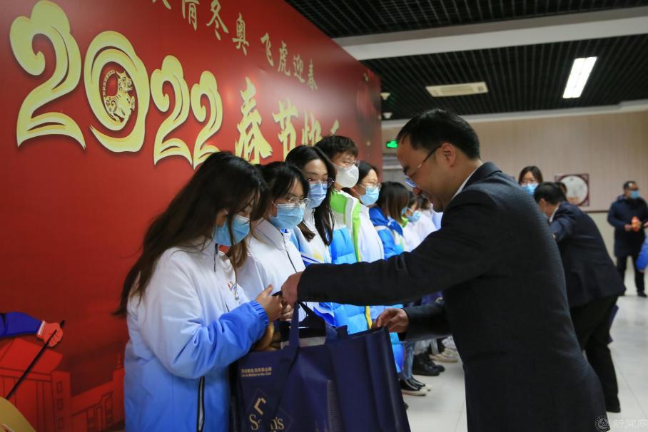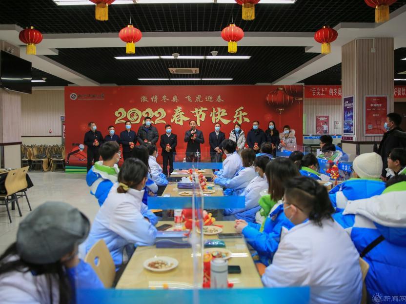 寅虎庆新春,激情迎冬奥。1月25日下午,毓秀餐厅一层张灯结彩、其乐融融。正值农历小年,副校长王力来到现场,与百余名冬奥志愿者及留校学生欢聚一堂,在“家”过年,共话收获喜悦,共庆新春佳节。
