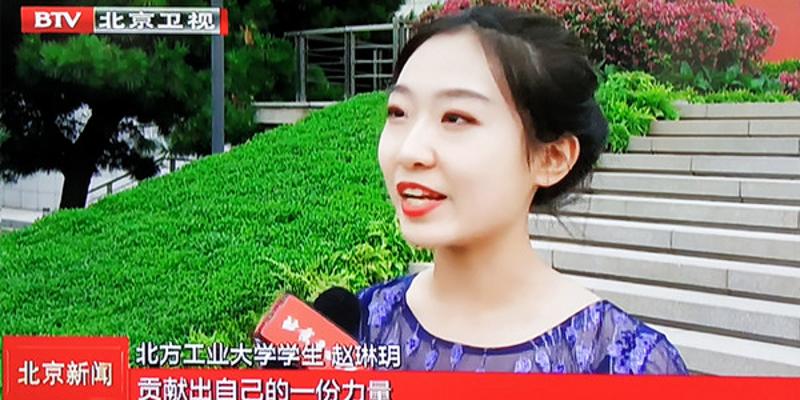 中央电视台《新闻联播》、北京电视台《北京新闻》等对纪念仪式进行了报道,我校学生代表赵琳玥同学接受了BTV的采访表示:“在纪念全民族抗战爆发82周年之际,我们作为一名青年大学生,要勿忘国耻、牢记使命,在党的领导下为实现中华民族伟大复兴贡献出自己的一份力量。”