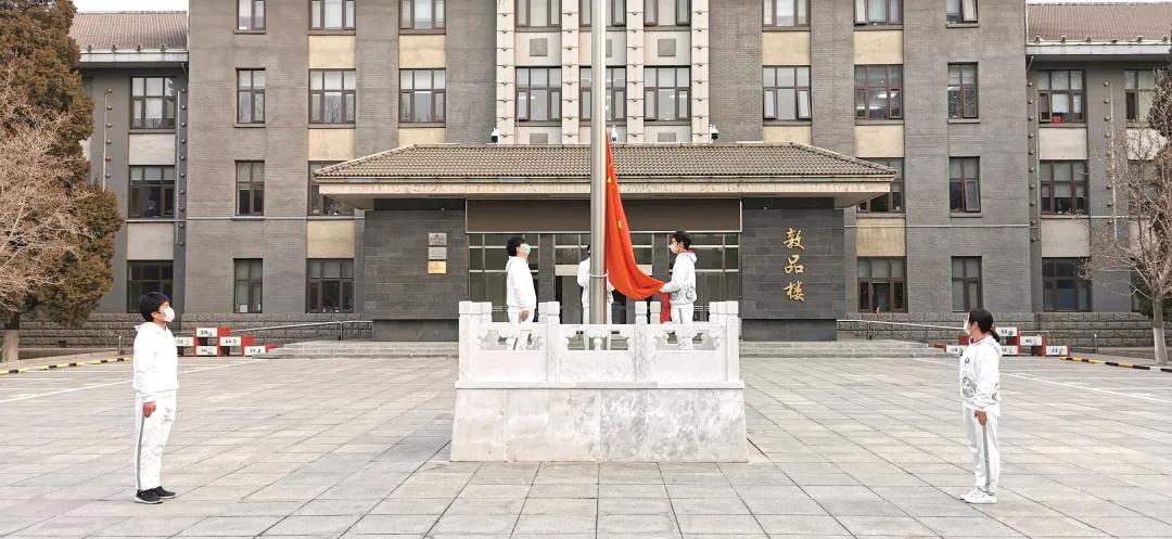 作为每个学期开学第一天的第一个重要活动——升国旗仪式,却没有被新冠肺炎疫情叫停。留校的5名学生党员组成的升旗小组,代表着全校一万多名师生,在这个早晨迎着初升的太阳,庄严地将五星红旗冉冉升起在校园中。