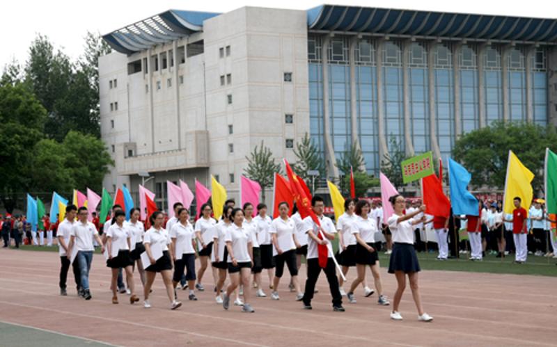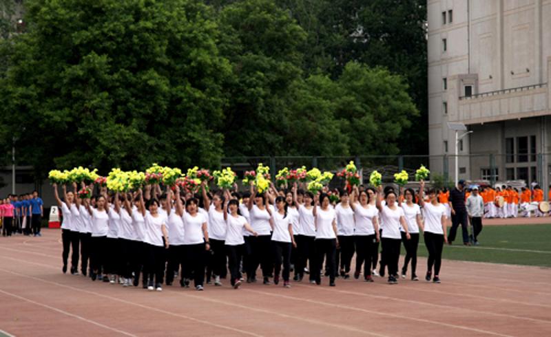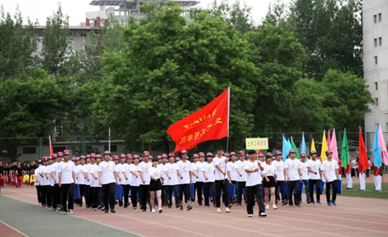 “青春无悔、激情无限,顽强拼搏、勇夺第一”