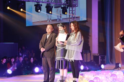图为建筑与艺术学院老师张鹏程为模特台风奖获得者颁奖