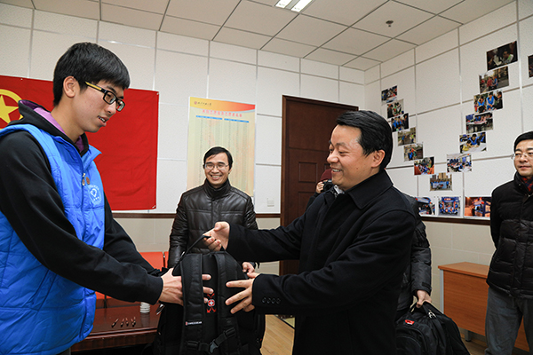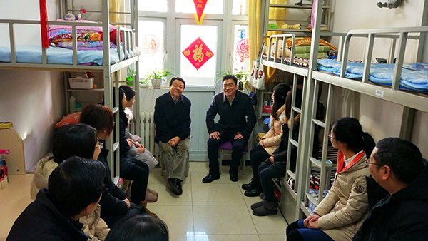 2017年1月20日,恰逢农历“小年”,团中央书记处书记傅振邦、团中央学校部副部长宋来、团市委副书记王洪涛、团中央学校部学联办主任柏贞尧、团市委大学部部长张秀峰等一行来到我校,亲切看望和慰问寒假留校学生。校党委书记谢辉、党委副书记田红芳以及相关职能部门负责人一同慰问。